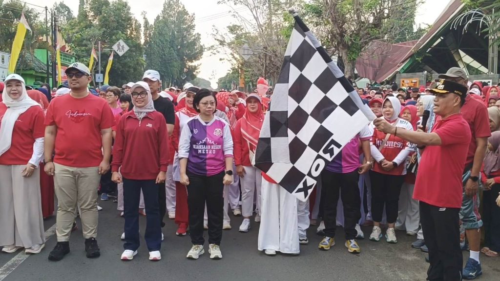 Metro — Kota Metro kembali menunjukkan semangat kebersamaan dalam peringatan Hari Ulang Tahun (HUT) ke-80 Republik Indonesia. Ribuan warga memadati Lapangan Samber Park untuk mengikuti jalan sehat yang dilepas langsung oleh Walikota Metro Bambang Iman Santoso dan Ketua DPRD Ria Hartini.